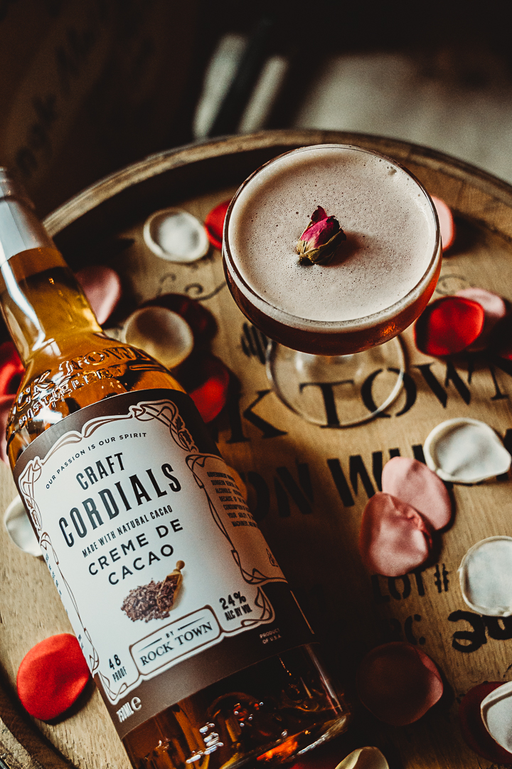 Pour all ingredients into a shaker tin over ice. Shake and strain into a chilled coupe glass and garnish with a rosebud.