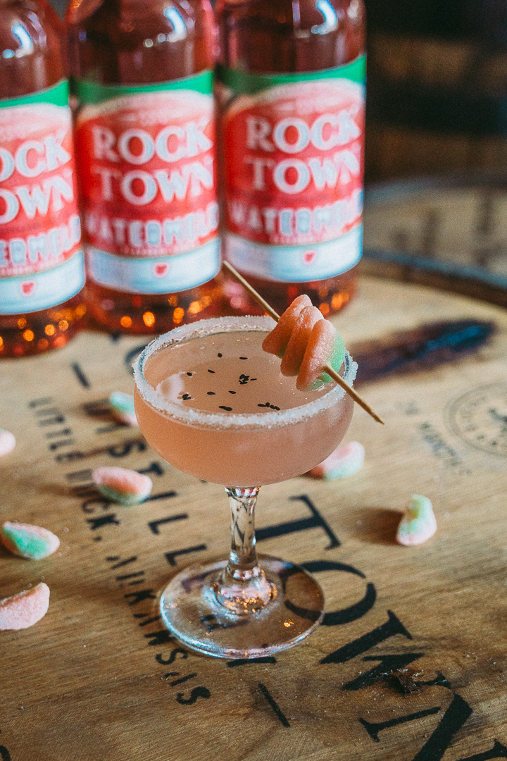 Pour all ingredients except into a shaker tin over ice. Shake and strain into a sugar & citric acid rimmed chilled coupe glass and garnish with black sesame seeds and Watermelon Sour Patch gummies.
